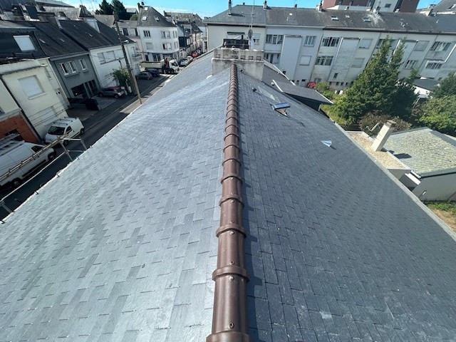 Les artisans ont ensuite posé les nouvelles ardoises avec un souci du détail irréprochable, utilisant des techniques traditionnelles pour assurer une bonne étanchéité et une finition soignée. Chaque ardoise a été soigneusement ajustée pour s'harmoniser avec les structures adjacentes, préservant ainsi l’intégrité visuelle de la maison.