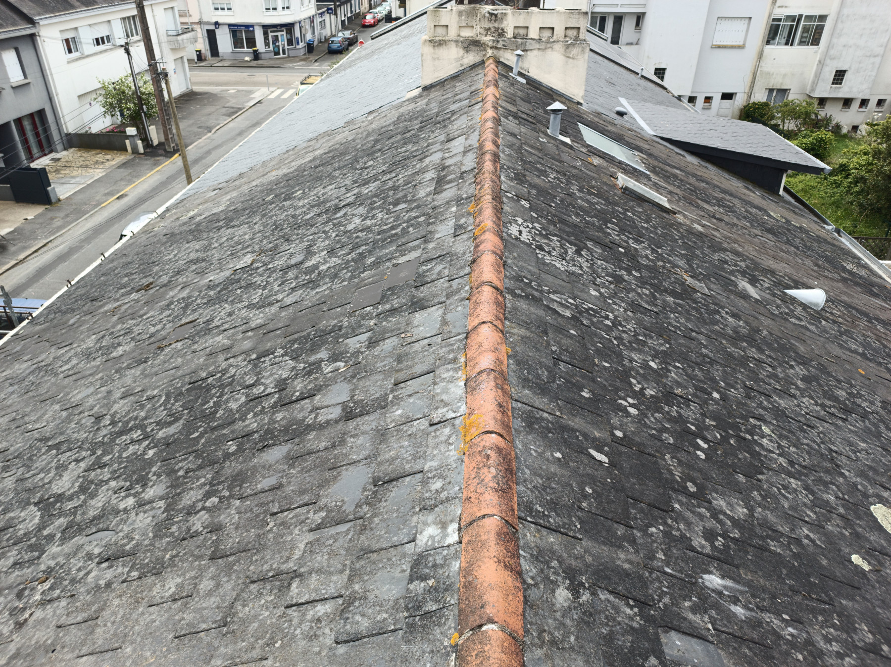 Dès le début des travaux, une évaluation minutieuse de l’état de la toiture existante a été effectuée. Les artisans de BT Couverture ont constaté que la toiture en ardoise, bien que vieillissante, présentait un potentiel de restauration intéressant. Ils ont donc élaboré un plan de rénovation qui incluait le remplacement des ardoises endommagées tout en conservant celles encore en bon état.